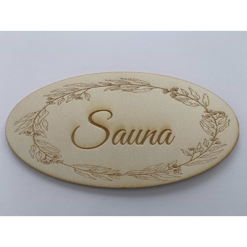 Dřevěná cedule SAUNA ovál 200x100mm