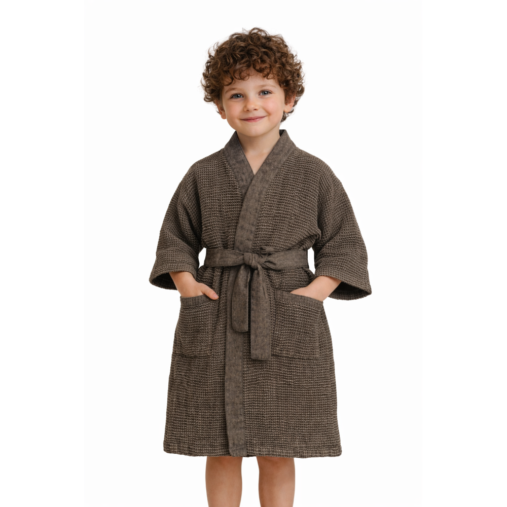 Váš oblíbený župan nyní také v dětské velikosti! Pohodlný župan s chambrayovými okraji a opaskem. Saunové textilie Kenn jsou vyrobeny z recyklované bavlny, což dodává látce přirozenou měkkost a zářivou strukturu.