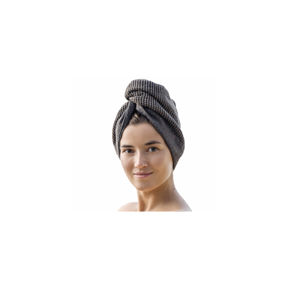Savý ručník na vlasy jemně vysuší a ochrání vlasy v sauně, vířivce nebo při ošetření obličeje.