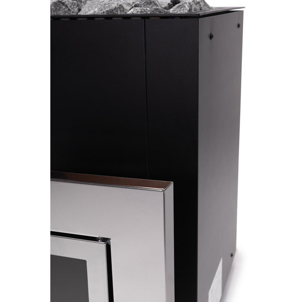 Ocelové pouzdro saunových kamen a design v černé barvě vytváří jednoduchou, ale stylovou atmosféru. Díky dřevěným držadlům je použití saunového topidla je bezpečné a jednoduché.