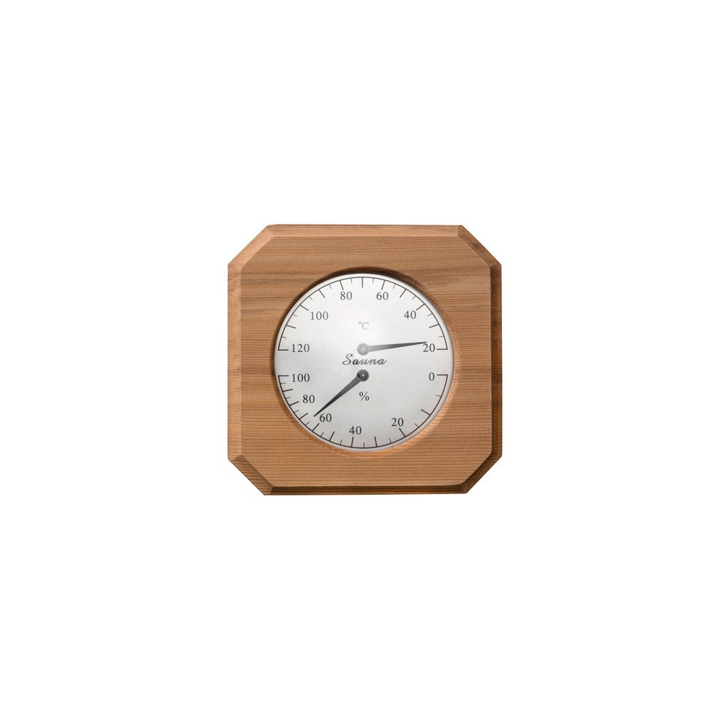 Teploměr a vlhkoměr - kombinovaný zasazen ve dřevě cedr, pro optimální měření teploty a vlhkosti v sauně. Velký rzsah měření.