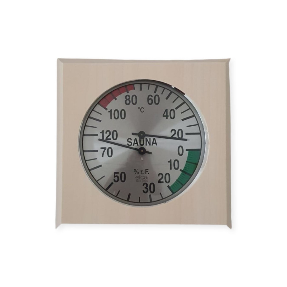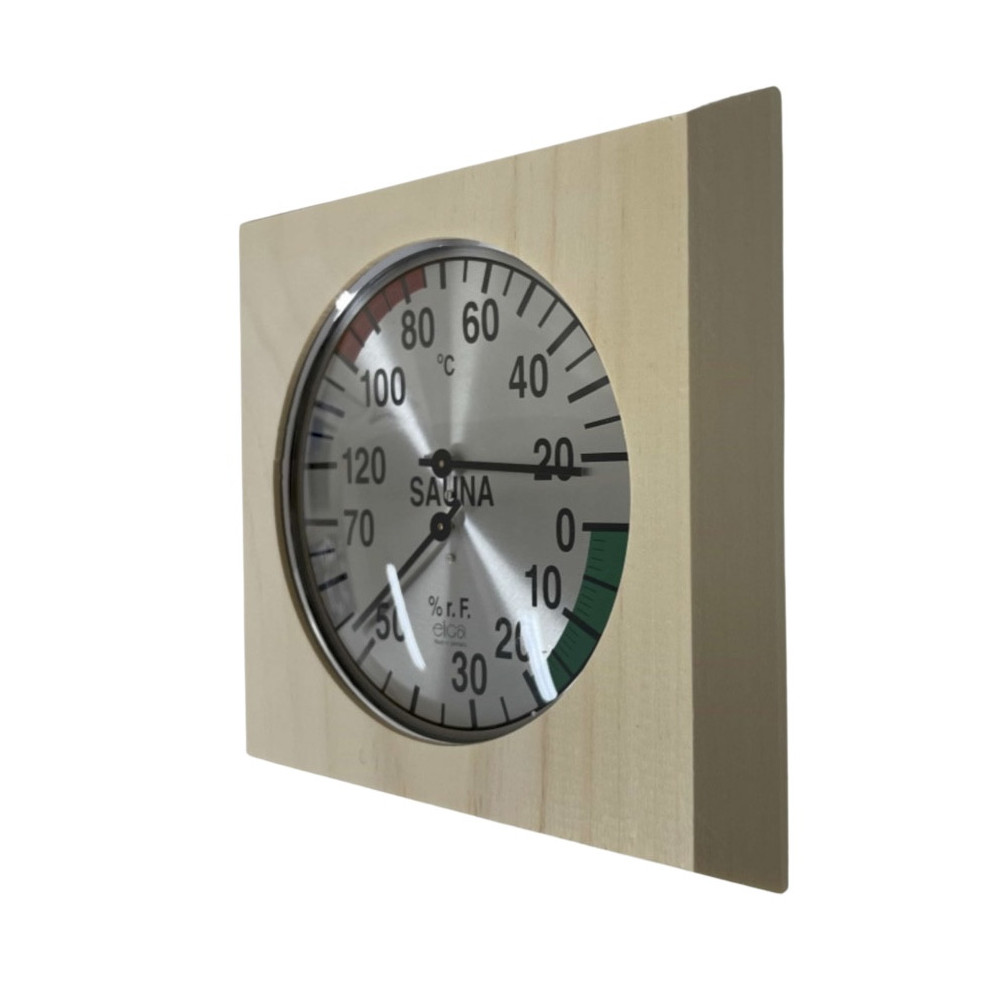 Teploměr s vlhkoměrem ve dřevě do sauny-čtverec