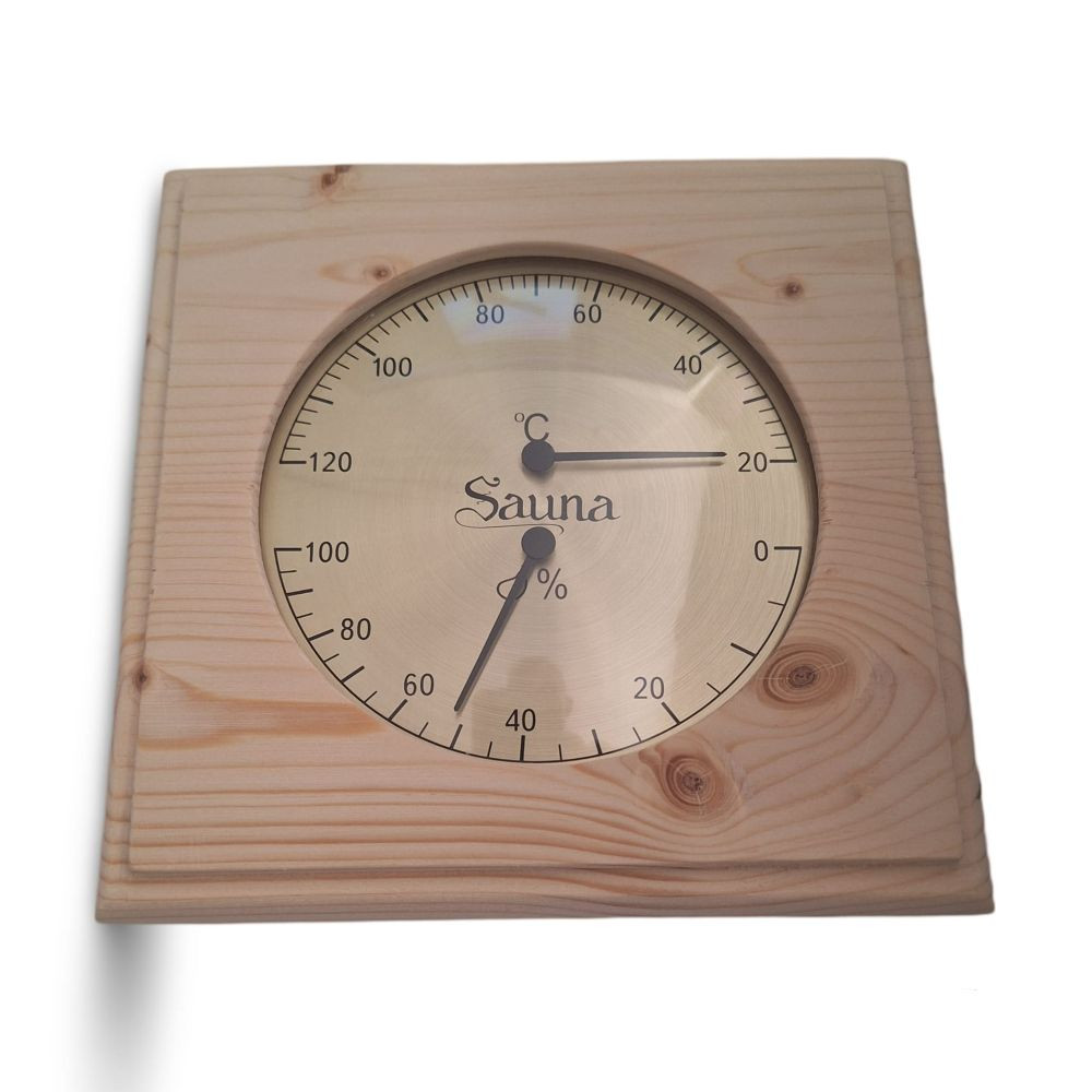 - Dřevěný teploměr s vlhkoměrem: Sledujte teplotu a vlhkost ve vaší sauně s tímto stylovým a funkčním teploměrem. Přesné měření vám pomůže udržet ideální podmínky pro vaši saunovou relaxaci.