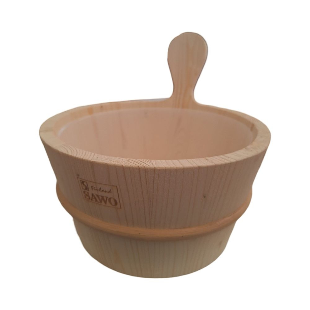 - Vědro ze smrkového dřeva s plastovou vložkou o obsahu 4L: Ideální pro nabírání a rozptylování vody na horké kameny, což zvyšuje vlhkost a teplotu v sauně. Plastová vložka zajišťuje snadnou údržbu a dlouhou životnost.