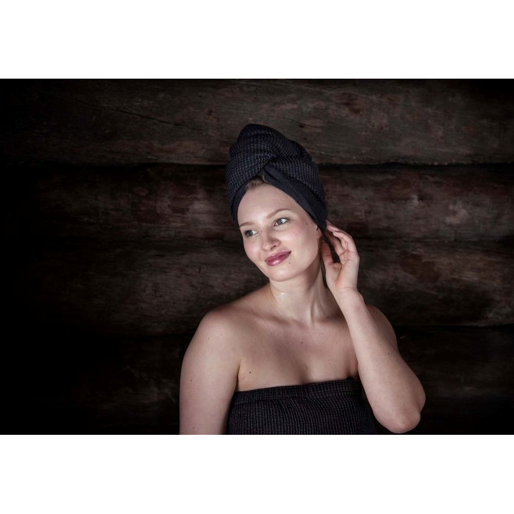 Savý uterák na vlasy jemne vysuší a ochráni vlasy v saune, vírivke alebo pri ošetrení tváre.