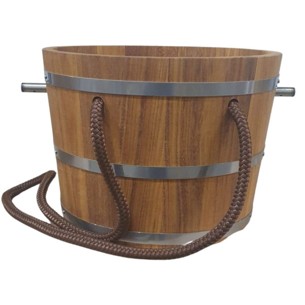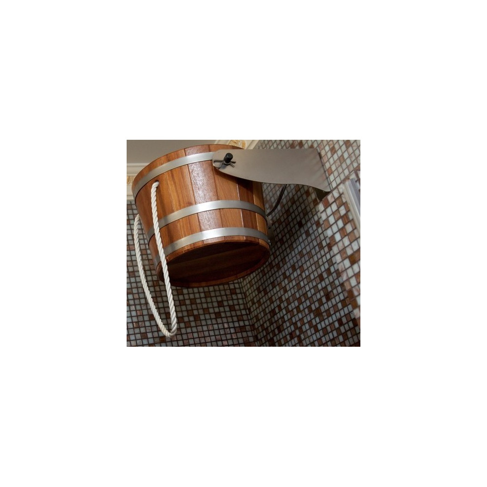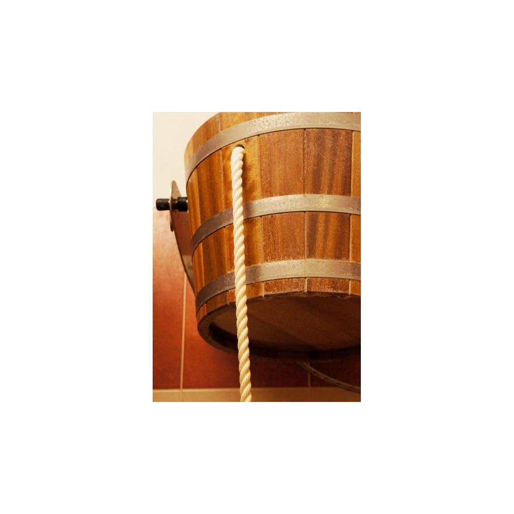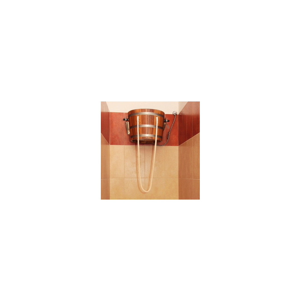 Ručne vyrobené polievacie vedro do sauny s objemom pre cca 18 l vody. Tmavé prevedenie materiál Jelša. Vedro môžete upevniť na strop alebo na stenu. Súčasťou dodávky je systém napúšťania, lanové tiahlo, nerezové konzoly, uchytávacie spony.