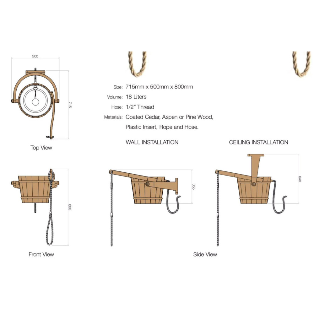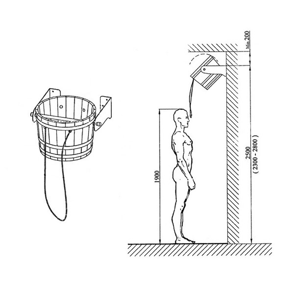 Polievacie vedrá do sauny patrí ku každej saune, poskytuje jednoduché ovládanie a prirodzený vzhľad sa hodí aj do dnešnej moderných ochlazoven. Vedro sa dá pripevniť ako na stenu, tak i na strop, má samodopouštěcí mechanizmus. druhý koniec dodanej sprchovej hadice sa pripojí k domovej vodovodnej prípojke. Vedro nie je vhodné do exretiéru.