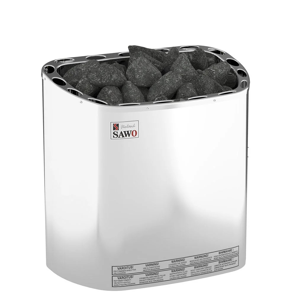 Elektrická saunová pec Sawotec 60S pre malé domáce sauny, efektívny ohrev a moderný dizajn.