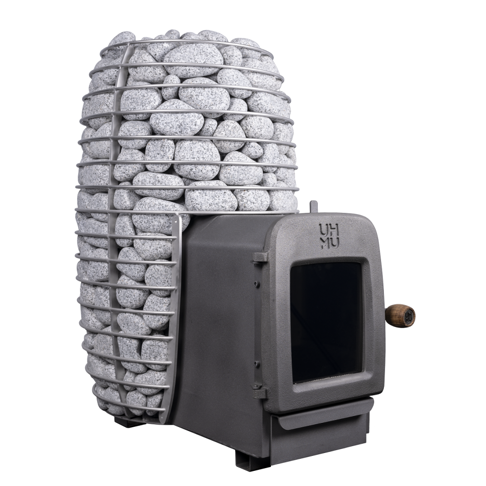 Pec na drevo do sauny HUUM Hive Heat, nerez a liatina, výkon 12 kW. Dvierka sú vyrobené z liatiny, pec je ošetrena iba prírodnými materiálmi a olejmi.