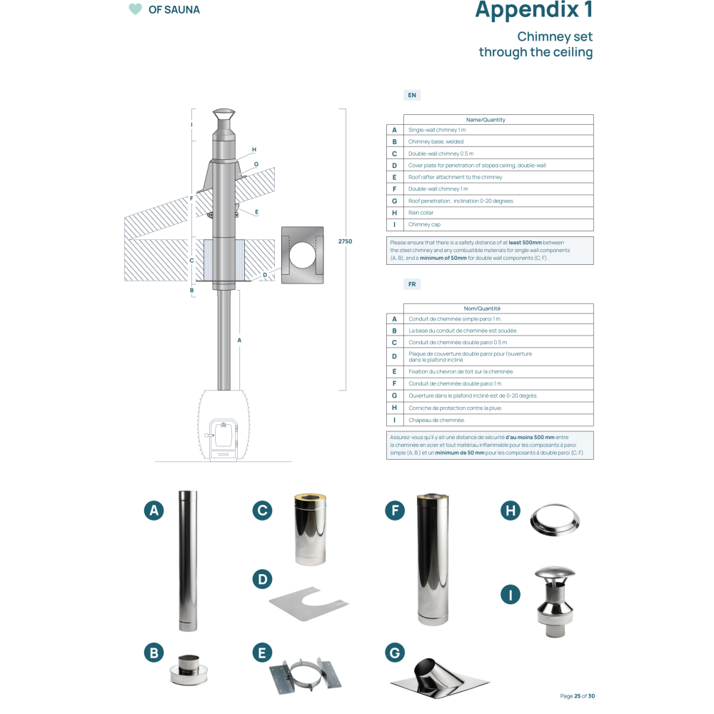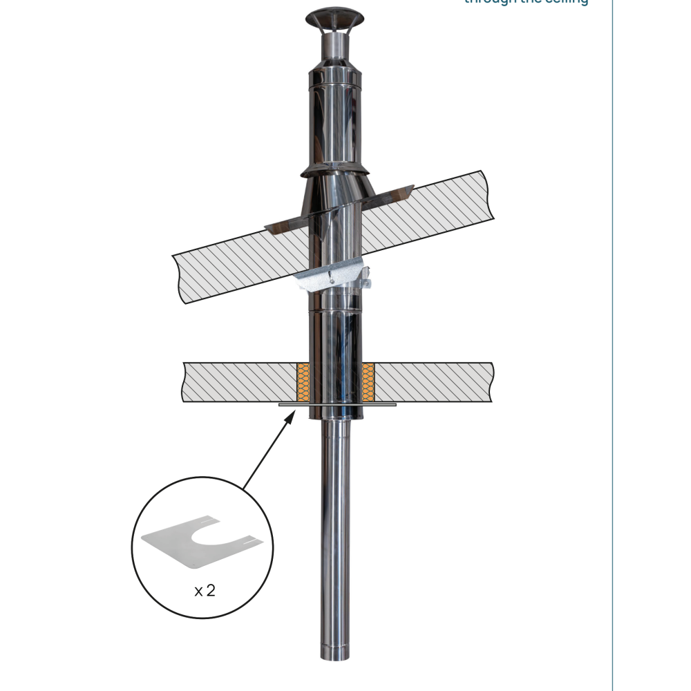 Komínová sada určená pre priechod komína skrz strop, zabezpečujúca bezpečný a certifikovaný odvod dymu.