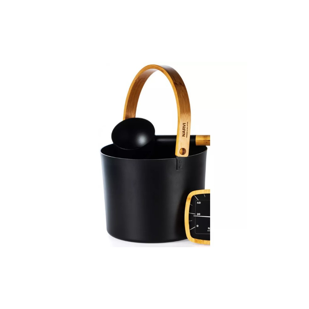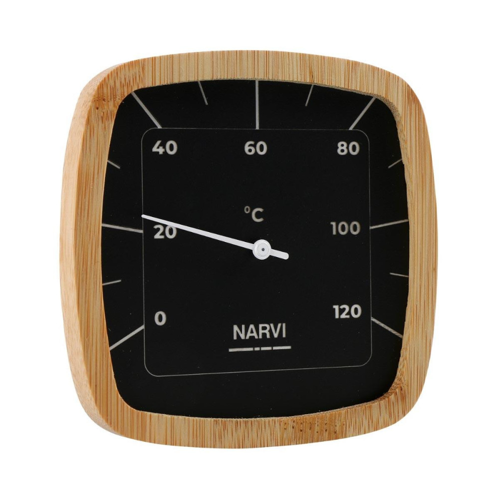 Luxusný teplomer do sauny radu Narvi Black je vyrobený z kvalitného čierneho hliníka a bambusu. Tento teplomer je navrhnutý na použitie v saunách a umožňuje presné meranie teploty priestoru. Displej je umiestnený na čiernom hliníkovom pozadí, ktoré dodáva teplomeru moderný vzhľad. Biela ručička a indexy sú dobre viditeľné a vďaka tomu je možné teplotu prečítať aj v intímnom prostredí Vašej sauny v rozsahu od 0 ° C do 120 ° C. Vďaka svojmu modernému dizajnu a použitým kvalitným materiálom je tento teplomer vhodný pre všetky typy sáun a predstavuje skvelý doplnok do Vašej sauny.