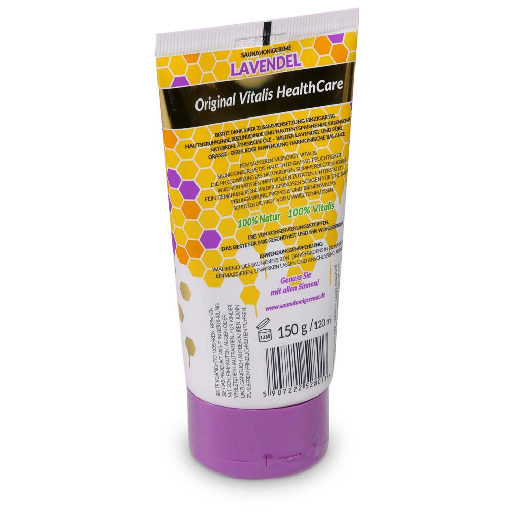Jemný peelingový účinok, vďaka jemne namletým semenám divokých marhúľ, ktorá odstráni tvrdú kožu a ponúka prírodné hydratáciu pokožky. Krém je vyrobený z čistého letného kvetového medu. Propolis a včelí vosk je z vysoko kvalitného ekologického poľnohospodárstva - včelárstvo. Skladá sa z prirodzene čistých éterických olejov, bez konzervačných látok, hustej konzistencie - teda ani kvapka nazmar na saunovú lavici. Použitie: v saune alebo mokré parnom kúpeli. Naneste na pokožku a nechajte pôsobiť, potom v sprche opláchnite. Levanduľa s divokou levanduľou a sladkým pomarančom pre sladkú jemnú vôňu.